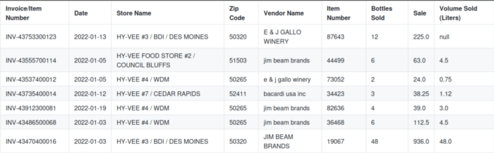 To illustrate these concepts, we will use a mock dataset based on the Iowa Liquor Sales Dataset as a running example. The dataset as well as the complete code for this blog can be found in the following GitHub repository.
