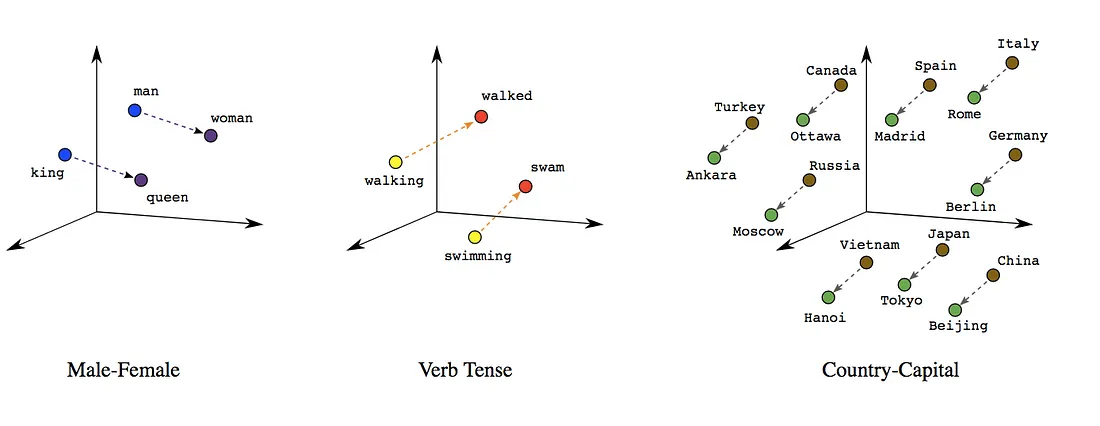 But the real beauty of these embeddings is that they can capture relationships between words. For example, the vector difference between “king” and “queen” is similar to the difference between “man” and “woman”. This suggests that the embeddings have learned something about the concept of gender.