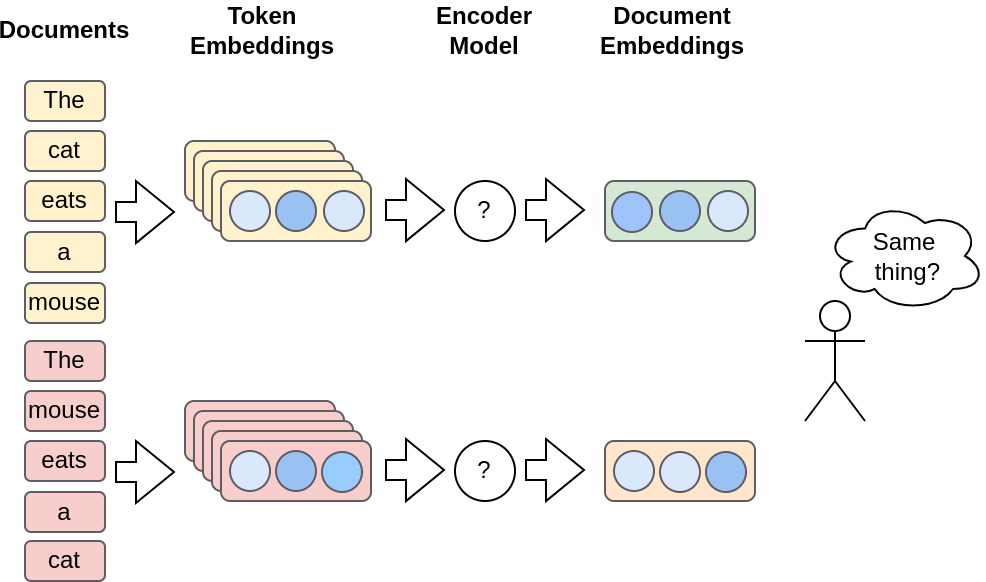 While methods like Word2Vec are great for creating simple word embeddings, they produce what we call “shallow embeddings”. In this context, shallow means that a matrix of weights is trained directly, and thus can be used like a dictionary. As such, the number of possible embeddings is equal to the number of tokens in your vocabulary. This works fine when you’re dealing with individual words, but it starts to break down when you’re working with sentences or whole documents.