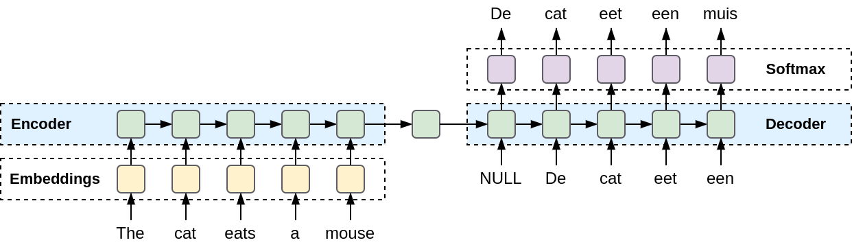 Visualization of encoding and decoding flow of an Seq2Seq model.